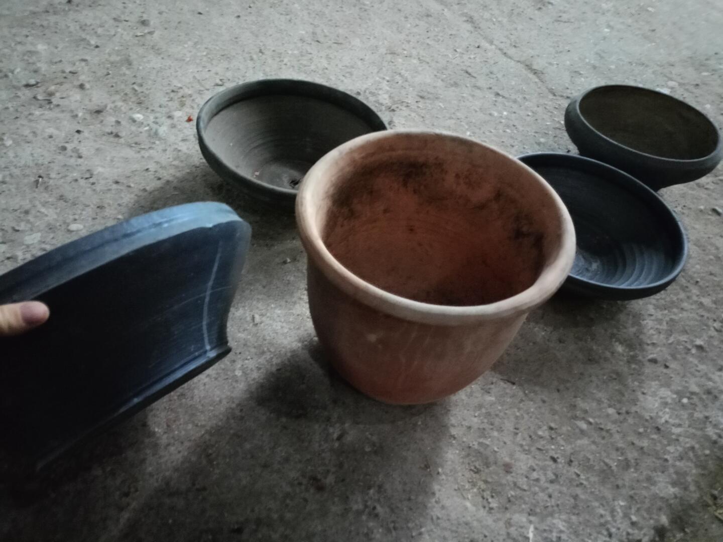 Duże donice ogrodowe z gliny, można przemalować te ciemne. 100 za wszystkie