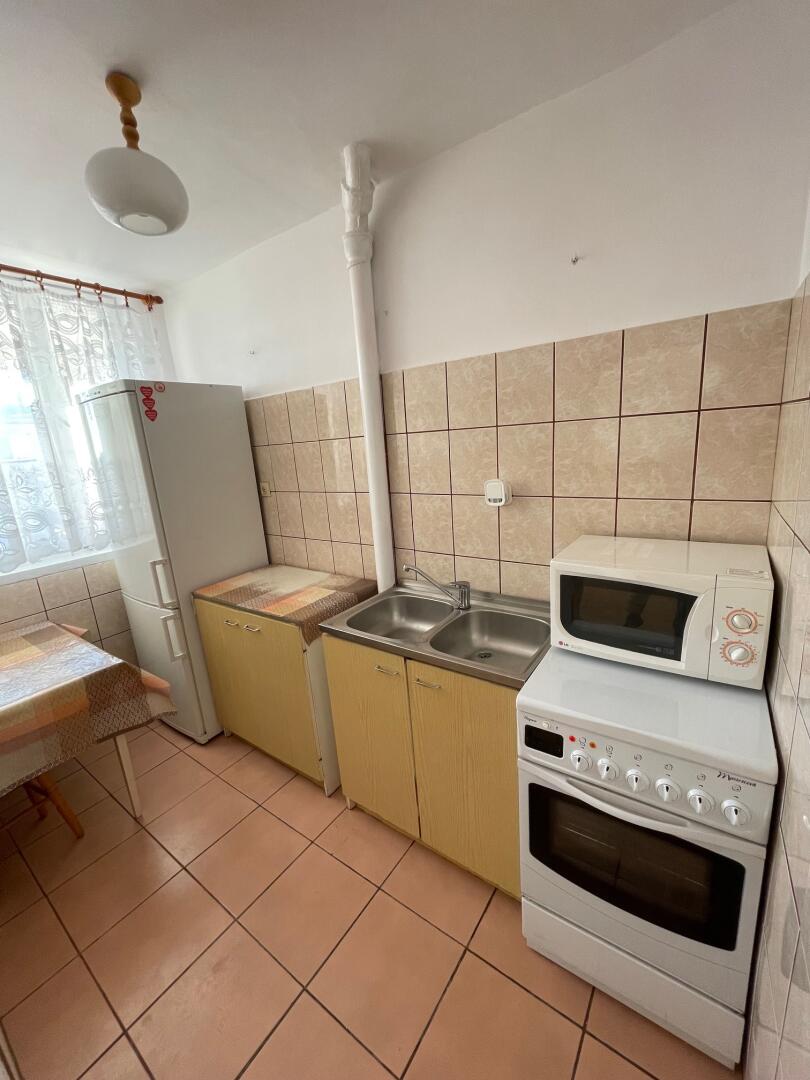 Mieszkanie dwustronne, dobrze doświetlone, składa się z dwóch pokoi, osobnej kuchni, łazienki z WC, przedpokoju oraz niewielkiego balkonu. Salon jest przestronny i ustawny, łazienka z wanną, wyposażona w nową pralkę. Wnęka z pojemną szafą w przedpokoju oraz zabudowa na wymiar w sypialni dają dużą przestrzeń do przechowywania. Ekspozycja południowo ? zachodnia salonu sprawia, że mieszkanie jest bardzo słoneczne i ciepłe. Kuchnia, łazienka oraz przedpokój wymagają odświeżenia lub remontu co stwarza możliwość własnej aranżacji i dopasowania przestrzeni do indywidualnych potrzeb.