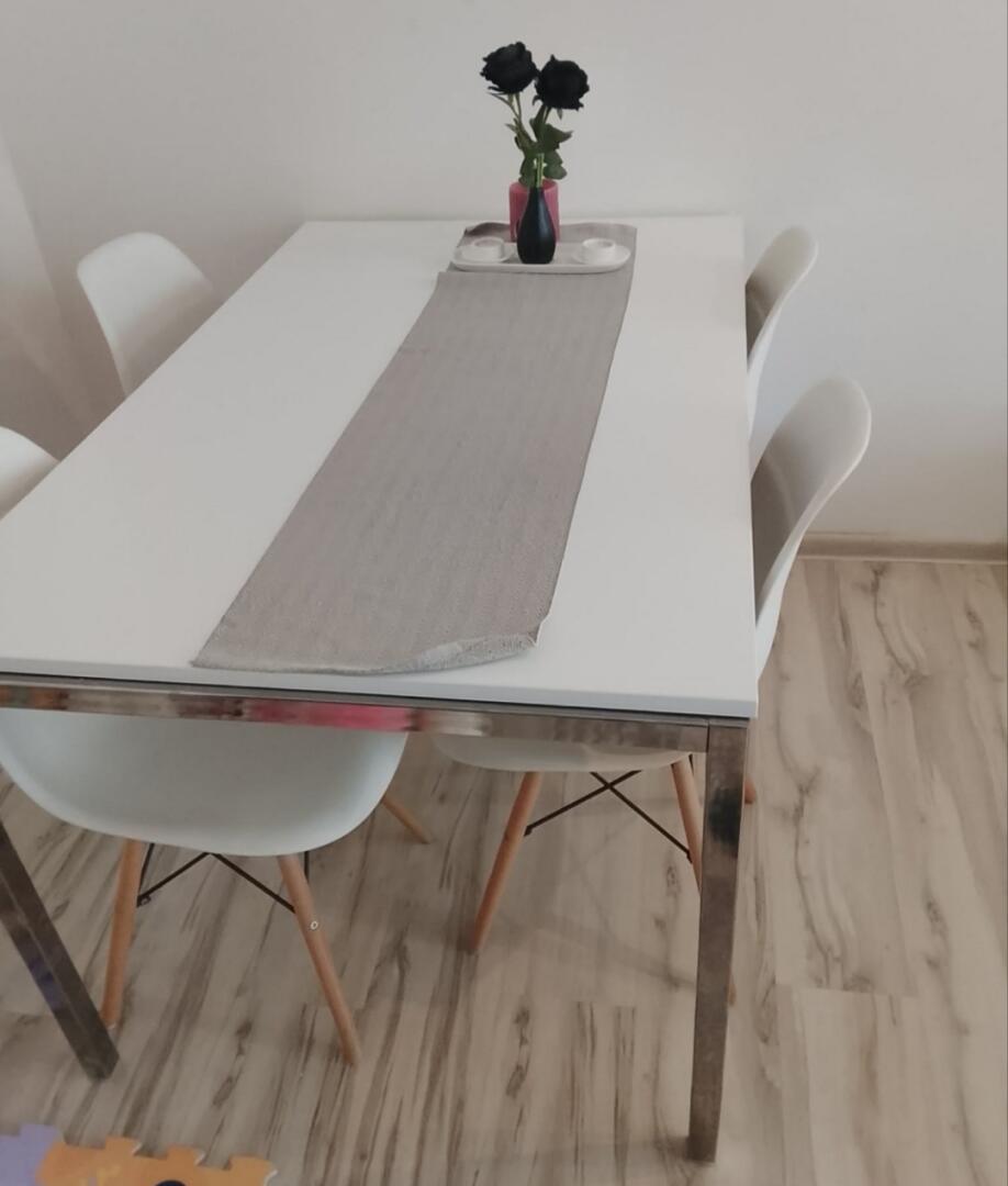 Sprzedam bardzo ładny stół nowoczesny na metalowych nogach,blat biały połysk.Wyniary stołu 135*85. W komplecie 4 krzesła.Kontakt 669503108, Nie odpowiadam na smsy!!!