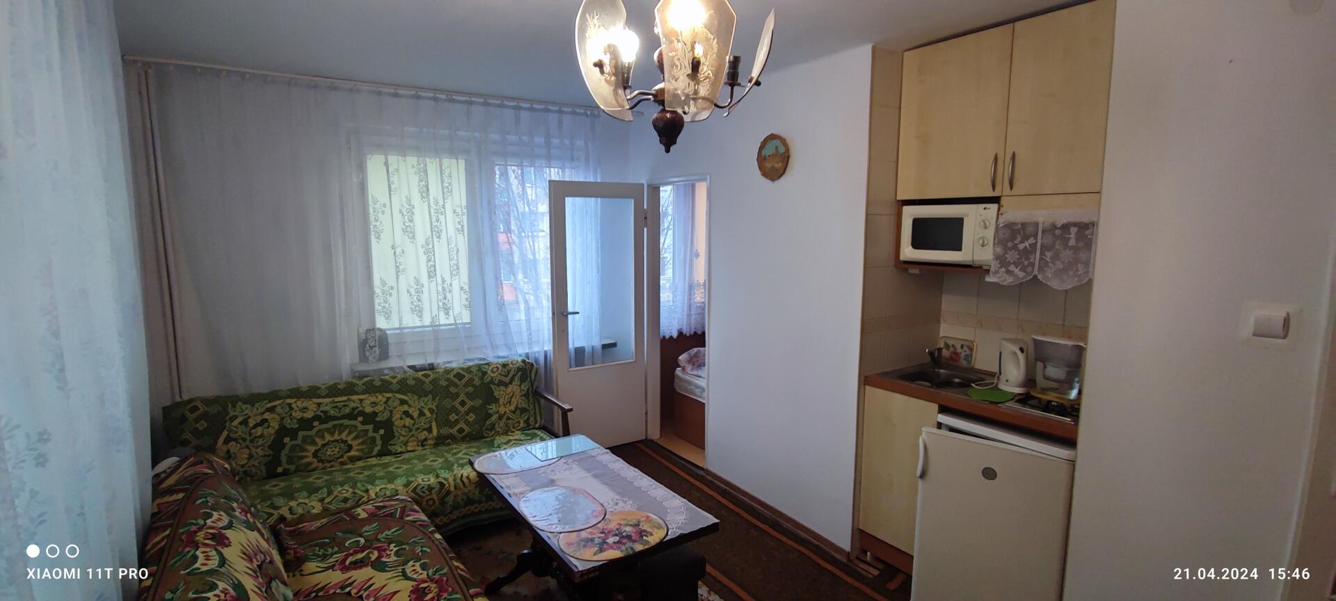 Mieszkanie składa się z przedpokoju, łazienki /wc prysznic pralka umywalka/, pokoju połączonego z aneksem kuchennym oraz oddzielną sypialnią.