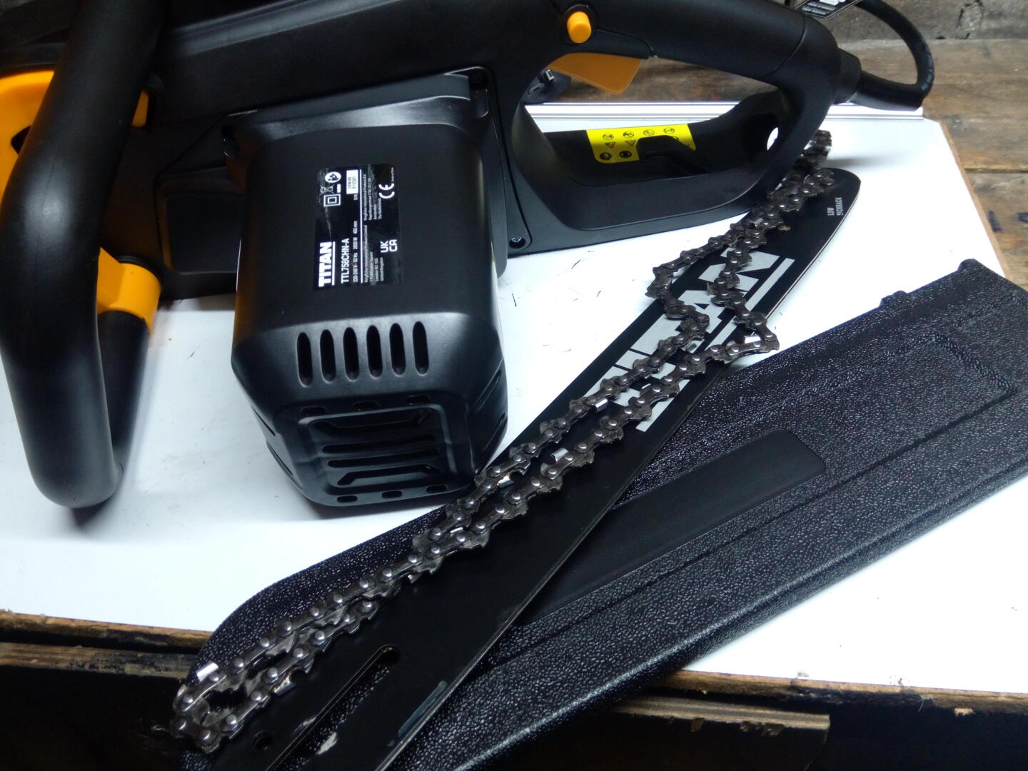 2000W 5 m kabla, prowadnica z łańcuchem, opakowanie.